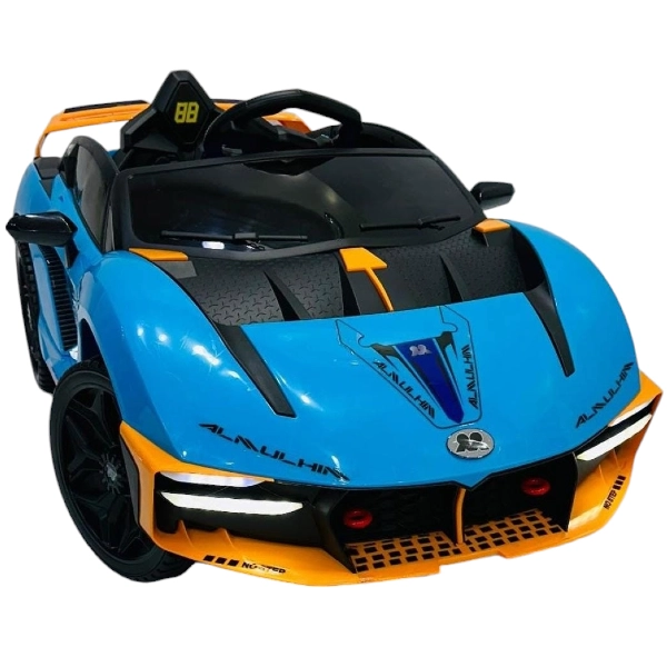 تصميم رياضي فريد: تأتي السيارة بهيكل انسيابي جذاب بلمسات برتقالية وزرقاء مع ملصقات سباق تضفي طابعاً من الحماس.
